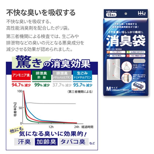 【消臭袋】不快な臭いを吸収する、高性能消臭剤を配合したポリ袋。