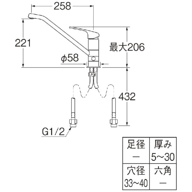 [注]水栓の取付面とカウンター天面との段差が9mm以上ある場合は取付けできません。