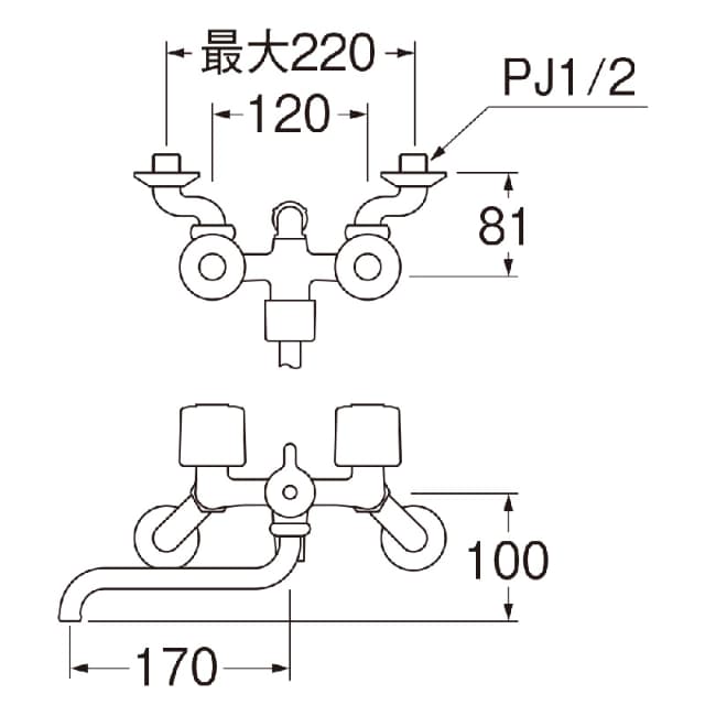 SANEI ツーバルブシャワー混合栓 共用形 シャワーバス水栓 壁付 SK11-W-13 浴室 バス用水栓金具 三栄水栓