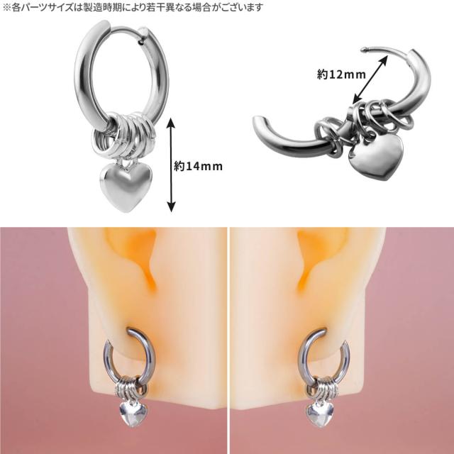 ハート チャーム フープ ピアス 18G サージカルステンレス ヘリックス 軟骨ピアス ボディピアス リング 揺れる ワンタッチ クリッカー