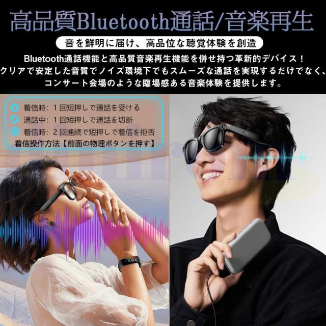 オープンイヤースピーカーシステムを備えたBluetoothグラスは、イヤホンの害から耳を保護するので健康的で、お気に入りの音楽を聴きながら周囲に注意を払うことができ、HDマイクは通話中の高品質サウンドを提供します。