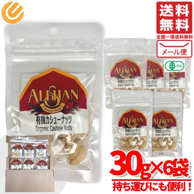 アリサン カシューナッツ 無塩 オーガニック 有機 ナッツ小袋 お試し 送料無料 30g×6袋 メール便 コストコ 通販