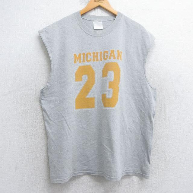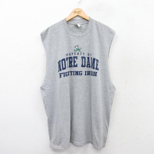 【商品名】 XL★古着 マジェスティック ノースリーブ ビンテージ Tシャツ メンズ 00年代 00s ノートルダム アイリッシュ 大きいサイズ ロング丈 クルーネック グレー 霜降り