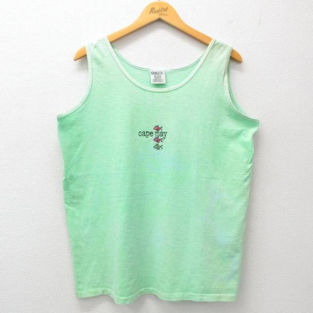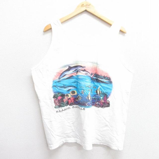 古着 ヘインズ Hanes ビンテージ タンクトップ メンズ 90年代 90s バハマ 魚 コットン クルーネック USA製 青緑 XLサイズ 中古 中古 古着