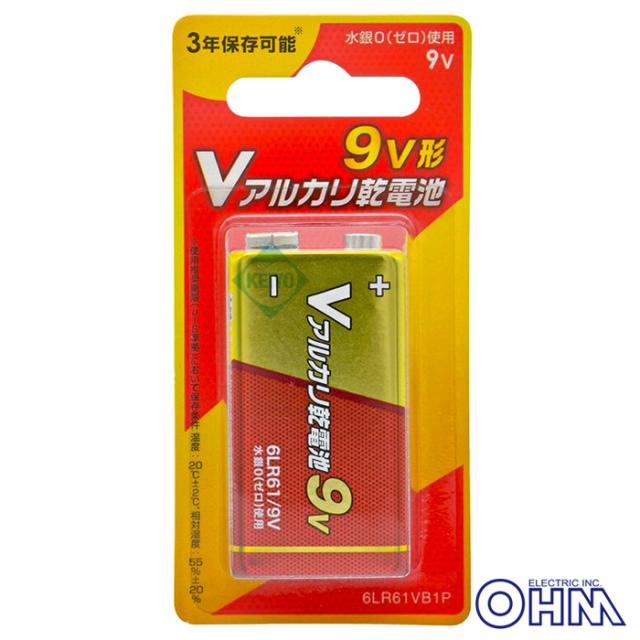 ■ 6LR61VB1P(08-4130) | Vアルカリ乾電池 006P 9V形 1本パック【オーム電機】【OHM】