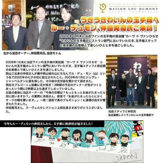 ドメーヌだけでなくネゴシアンにも「新世代」が台頭している。この中で一人の日本人の名前がフランス国内外で語られるようになった。「コージ・ナカダのルー・デュモン」である。すでに日本でも有名な仲田氏は、ネット上では「アンリ・ジャイエに絶賛された」、「サムライ」といった、わかりやすい切り口で紹介されることが多い。だが彼と話したり、そのワインを飲んだりしていちばん感じたことは、「ここまで消費者のことを考えている生産者は珍しいのではないか」ということだった。ワインの輸出先は日本だけではないが、日本を知る彼からは「ワインと飲み手の間にある『壁』を、少しでも取り除きたい」という信念がひしひしと伝わってくるのである。