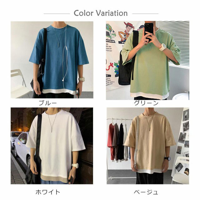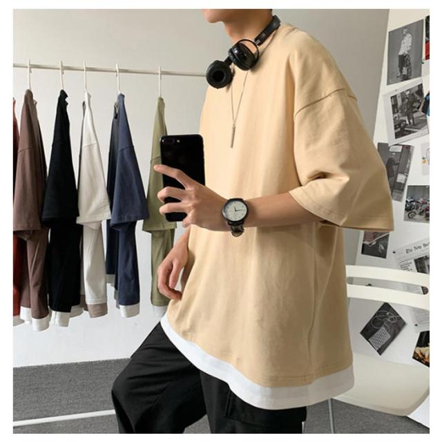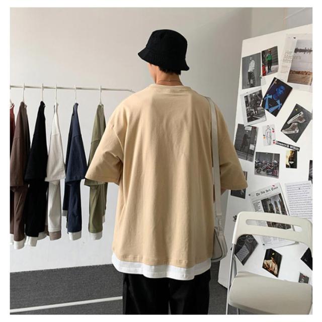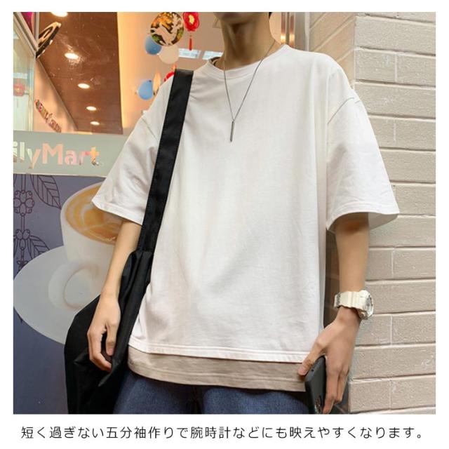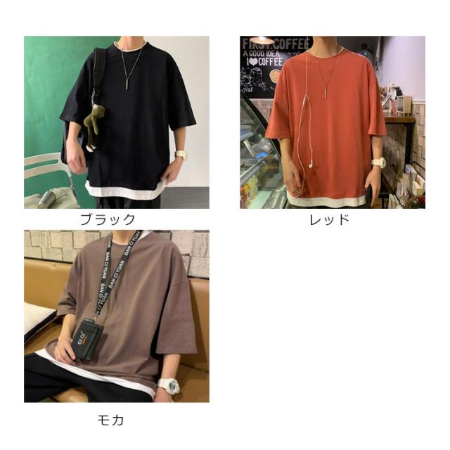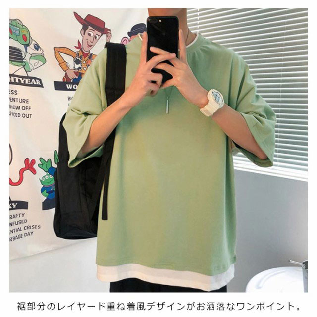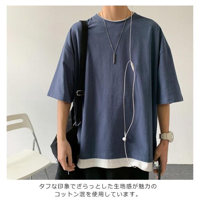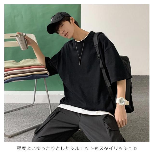 全7色!オーバーサイズtシャツ メンズ tシャツ ビッグシルエット レイヤード 半袖 無地 おしゃれ ビッグtシャツ レイヤード風 楽ちん ゆったり 重ね着 ラウンドネック 夏 春夏 ファッション 送料無料