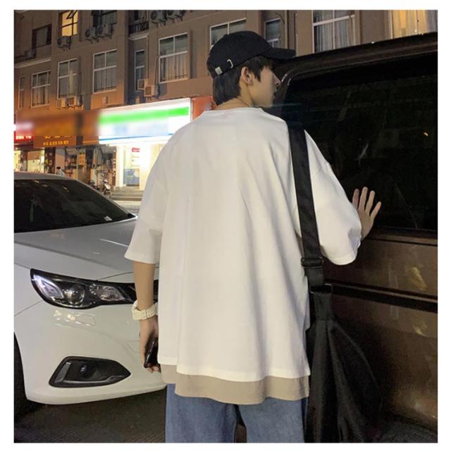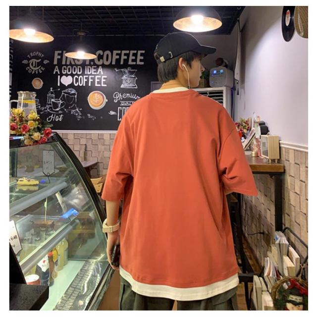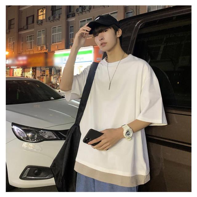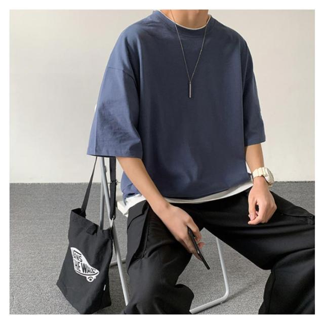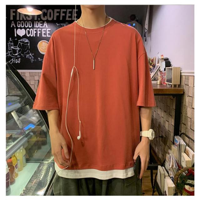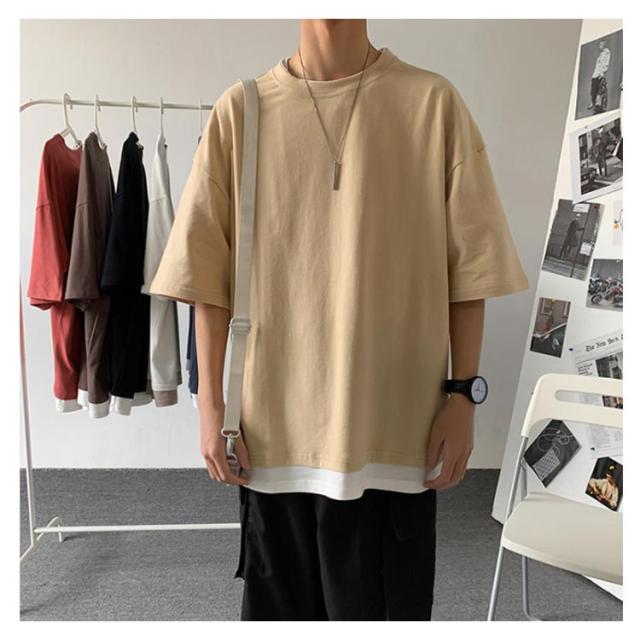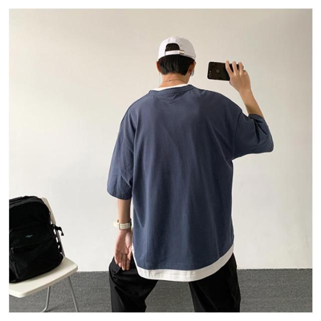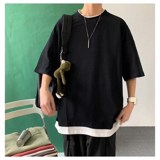 全7色!オーバーサイズtシャツ メンズ tシャツ ビッグシルエット レイヤード 半袖 無地 おしゃれ ビッグtシャツ レイヤード風 楽ちん ゆったり 重ね着 ラウンドネック 夏 春夏 ファッション 送料無料