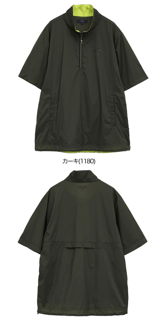 肌馴染みの良い、柔らかなナイロン素材の半袖ブルゾンです。気温が変化しやすい秋ゴルフの羽織りモノとして重宝します。長袖のウェアと合わせることもできるため、ロングシーズン活躍するアイテムです。撥水性があり、少しの雨なら弾いてくれるので安心です。脇ファスナーで着脱がしやすく、裾のスピンドルでシルエットを変化させることができます。品番:C25216100