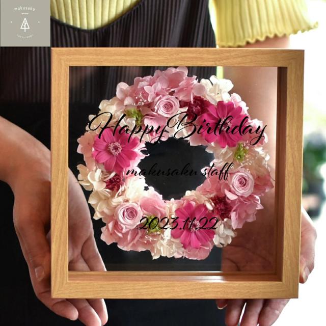 ギフト プリザーブドフラワー リース フレーム プレゼント 誕生日 発表会 記念日 お祝い 開店祝い 周年祝い 記念日 縁起物 母親 女性 妻 彼女 両親 結婚式 ウェディング 20代 30代 40代 50代 60代 名入れ 還暦 両親贈呈 感謝状【Nフレーム/プリザリース】