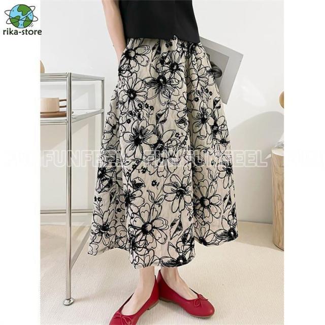 花柄スカート ロングスカート キレイ 花刺繍 フレアスカート ボトムス ロング 総花柄 スカート 体型カバー 春 夏 秋 ウエストゴム 通勤 30代 50代