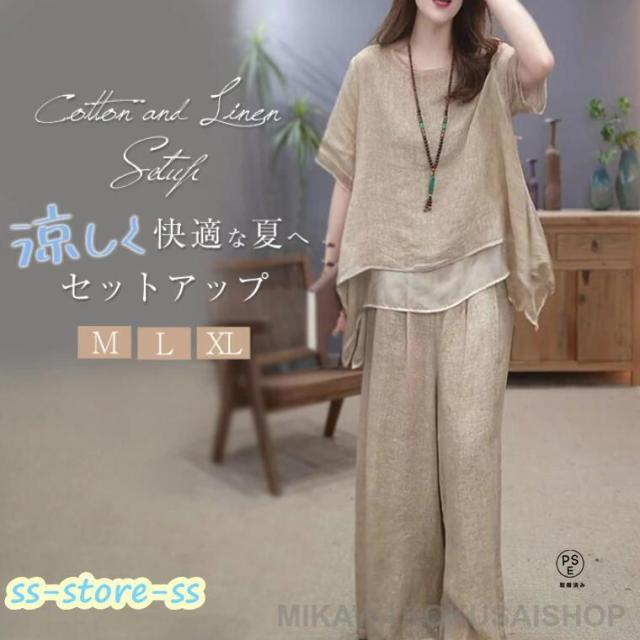 セットアップ レディース ブラウス シャツ ワイドパンツ 春 夏 秋 トップス パンツ カジュアル 定番 上下セット きれいめ