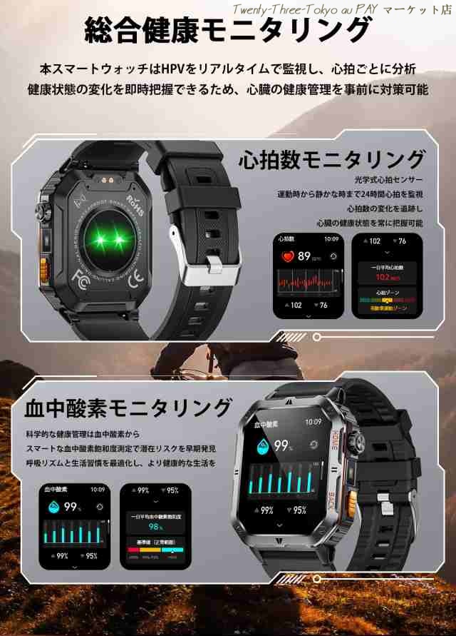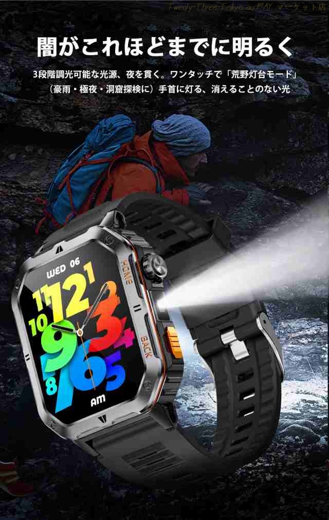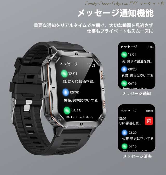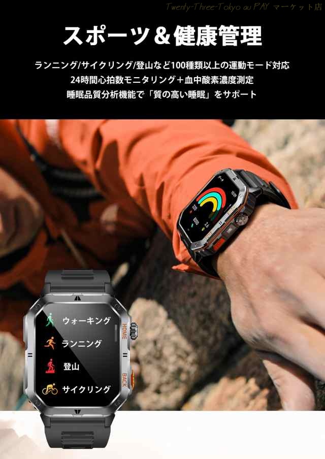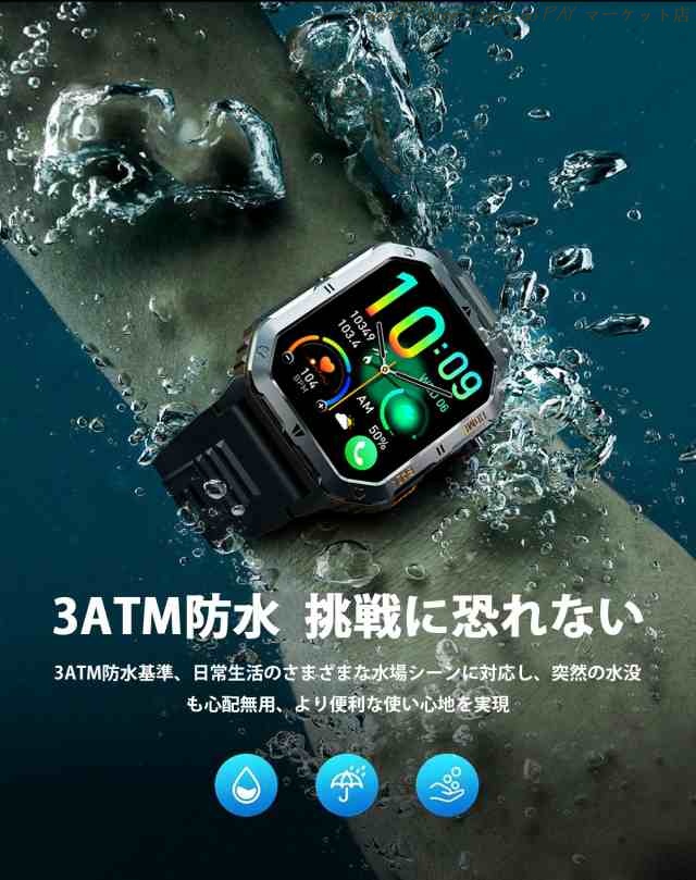 スマートウォッチ 軍用規格 日本製センサー 通話機能 着信通知 歩数計 心拍数 睡眠管理 音楽再生 カメラ制御 天気予報 懐中電灯 運動モード iPhone対応 android対応 プレゼント 父の日 母の日 新作