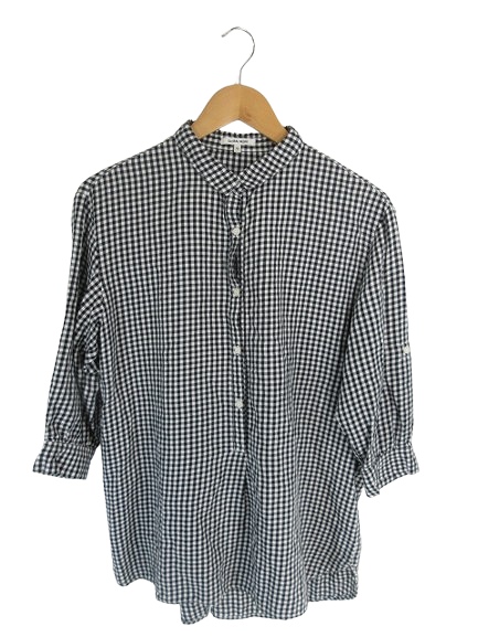 【中古】グローバルワーク GLOBAL WORK プルオーバー シャツ 五分袖 チェック柄 ブラック ホワイト サイズS レディース