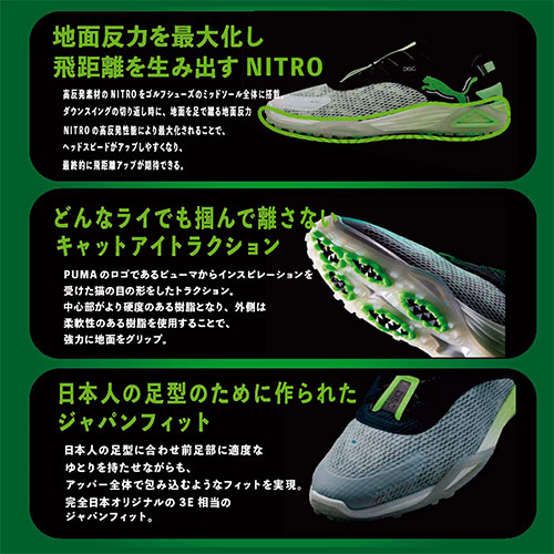 プーマが提供する革命的なゴルフシューズ、シャドウキャットニトロスパイクレス。