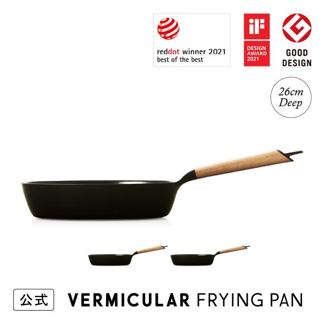 バーミキュラ フライパン 26cm 深型 公式 鋳物ホーロー オーク ウォールナット 瞬間蒸発 ガス ガス火 IH IH対応 シーズヒーター ラジエント シーズニング不要 日本製 専用レシピ本付 FP26D 送料無料 ギフト プレゼント 贈り物