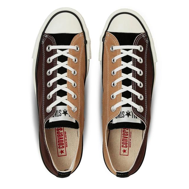 ヒールラベルの下部に印字した「MADE IN JAPAN」の文字、日本国旗をイメージして赤字で印したインソールのコンバースロゴが特別感を演出。