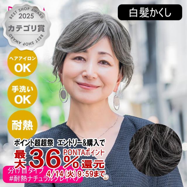 【超超祭 最大36%還元】[バレないウィッグ]プリシラ ST-005-TNGH 白髪かくし分け目タイプ #耐熱ナチュラルグレイヘア[日本製耐熱ファイバー100% ヘアアイロンOK 手洗いOK][送料無料](6062089)