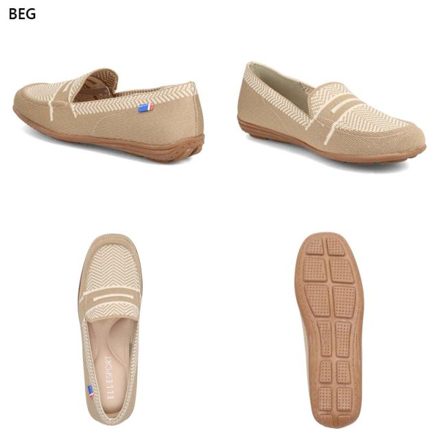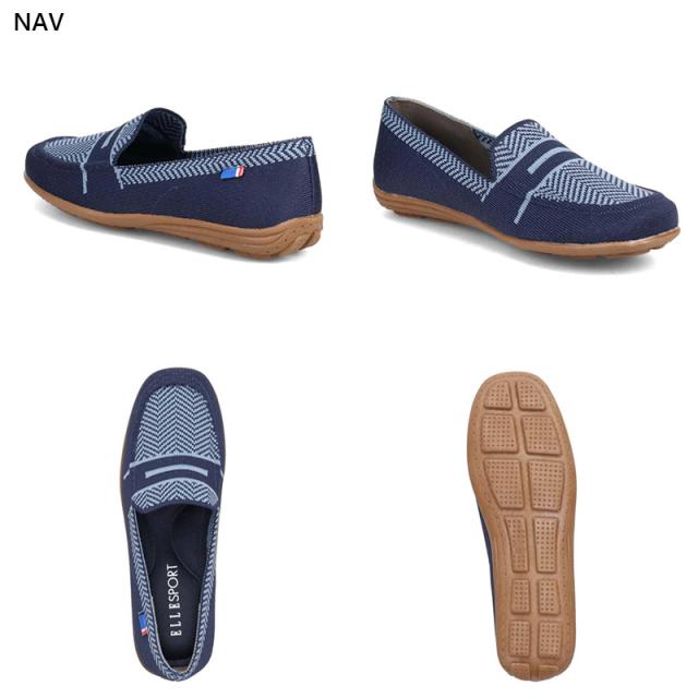 3E相当 エルスポーツ レディース ニットドライビングシューズ 靴 シューズ カジュアル おしゃれ 柔らかい 履きやすい 屈曲性 通気 ブラック 黒 グレー ネイビー ベージュ 灰色 送料無料 ELLE SPORT ESP14506