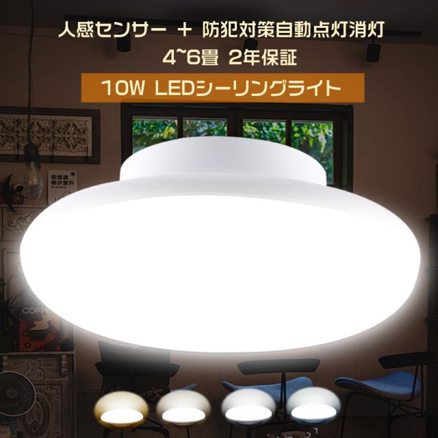 【PSE認証済】シーリングライト 人感センサー おしゃれ 6畳 8畳 小型 電球色 白色 昼白色 昼光色 LEDシーリングライト 人感センサー付き 10W 100W相当 高輝度2000LM 玄関 照明器具 天井照明 廊下 玄関灯 感度よし 室内 自動点灯 節電 省エネ 明暗センサー センサーライト