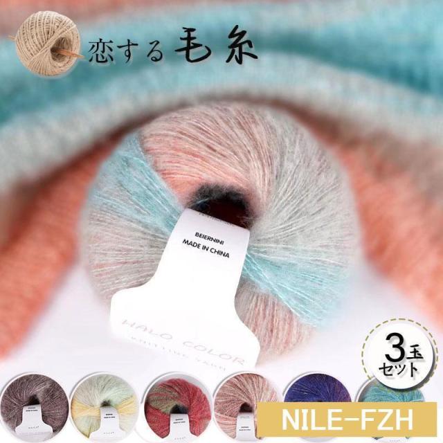 毛糸 中細 特価 3玉セット グラデーション かすり染め モヘア リュージュプリントコットン 秋冬 アウトレット ダイヤモンド毛糸