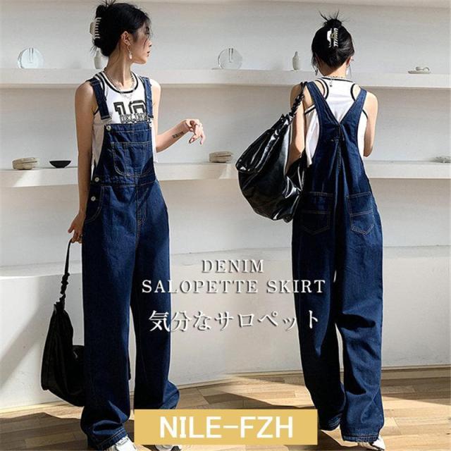 デニムサロペット オーバーオール オールインワン レディース デニムパンツ ワイドパンツ 作業服 ガウチョ サルエルパンツ 楽ちん ゆったり