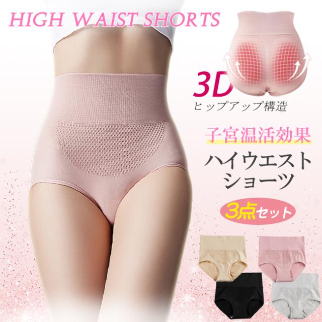 春新作 3枚セット ハイウエストショーツ 3D構造 ショーツ ハイウエスト パンツ 下着 冷房対策 腹巻きショーツ ストレッチ インナー 深ばき 子宮温活 産後 美尻 おなかすっぽり 引き締め 痛くない ポイント消化 母の日