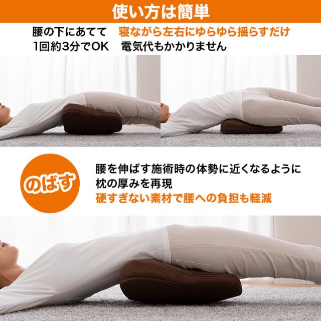 腰の下にあてて 寝ながら左右にゆらゆら揺らすだけ