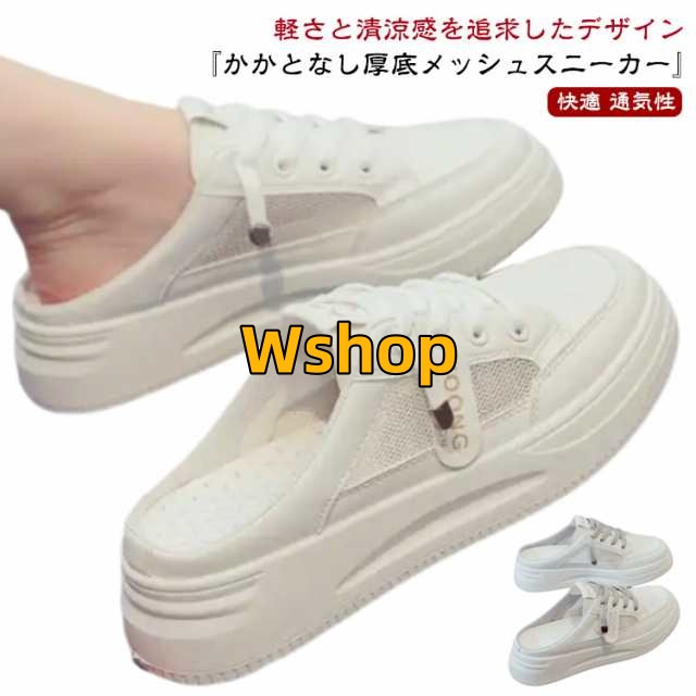 疲れない 靴 痛くない 白 サンダル 夏 軽量 通気性 履きやすい レディース クッション性 メッシュ つっかけ 歩きやすい スニーカー 厚底 かかとなし 春 快適 軽い 厚底スニーカー コンフォートシューズ 踵なし スリッポン カジュアルシューズ ウォーキングシューズ 【送無】