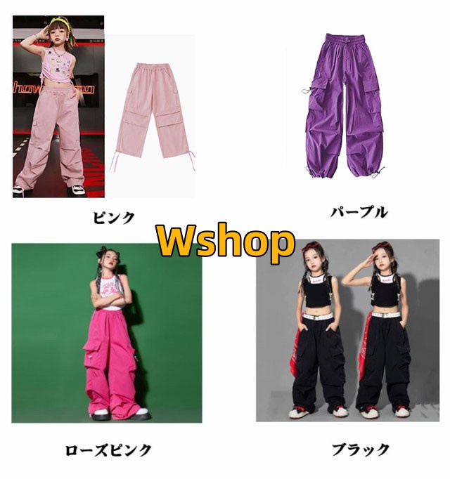 ステージ演出服 紫 かっこいい ピンク ジュニア ダンス ジャズダンス衣装 ダンスウェア キッズ 子供 赤 発表会 k-pop ダンス衣装 ストリート 黒 韓国 カーゴパンツ ズボン ガールズ ヒップホップ 緑 女の子 パンツ
