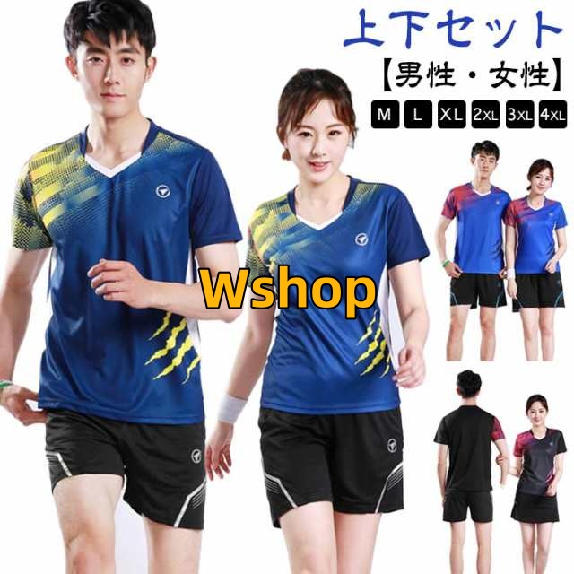 男性 吸汗速乾 レディース シャツ バドミントン 練習着 ウェア バレーボール メンズ 女性 大きいサイズ ジュニア 半袖 卓球ウェア フィットネスウェア テニス 上下セット ユニフォーム パンツ 卓球 通気性 トレーニング スポーツウェア