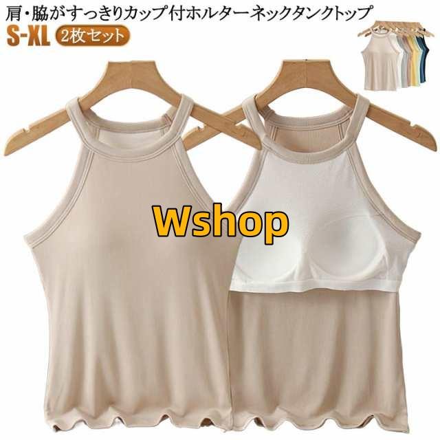ストレッチ トップス タンクトップ ホルターネック 送料無料 ノースリーブ カジュアル 重ね着 インナー シンプル トップス カットソー ブラウン ホルターネックブラ 無地 2枚セット カップ付き おしゃれ レイヤード