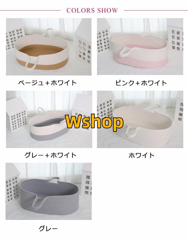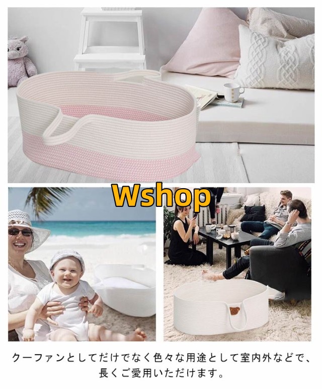 | おもちゃカゴやお洗濯カゴとしても使える赤ちゃんカゴ♪ 安心の安全性綿を使用ししっかりと編み込んで作られ頑丈な作りで、縫製もしっかり。ロープ編みタイプなので、赤ちゃんの手や足が当たっても安心。 持ち手付きで、持ち運びもラクラク。 優れた通気性、天然素材を編み込んで作られている為、とても通気性が良く快適に過ごせます。 クーファンとしてだけでなく色々な用途として室内外などで、長くご愛用いただけます。 お部屋にも合わせやすいデザインだから使わなくなったら、おもちゃ入れや洗濯カゴ、ペットのベッドにオススメ。 | |
