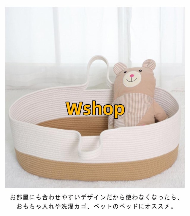 籠 添い寝 クーファン ロープ編み バスケット ベビーキャリー かご お昼寝 ベビー ベビーベッド 赤ちゃん ランドリーバスケット バスケット おもちゃ入れ ベビーバスケット クーハン 持ち運び ベビー 寝返り防止 シンプル