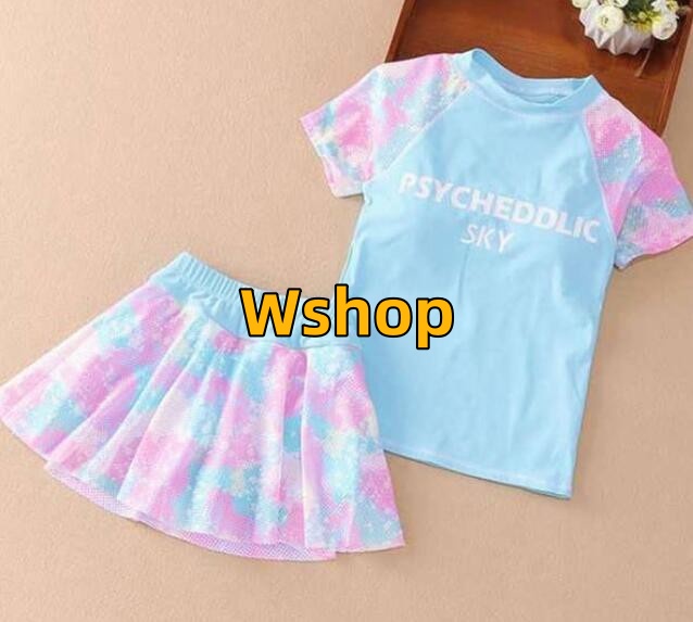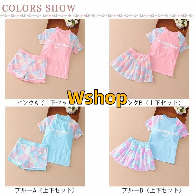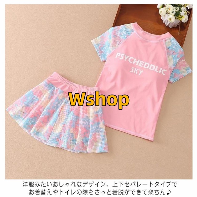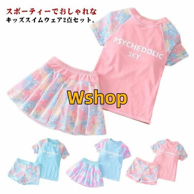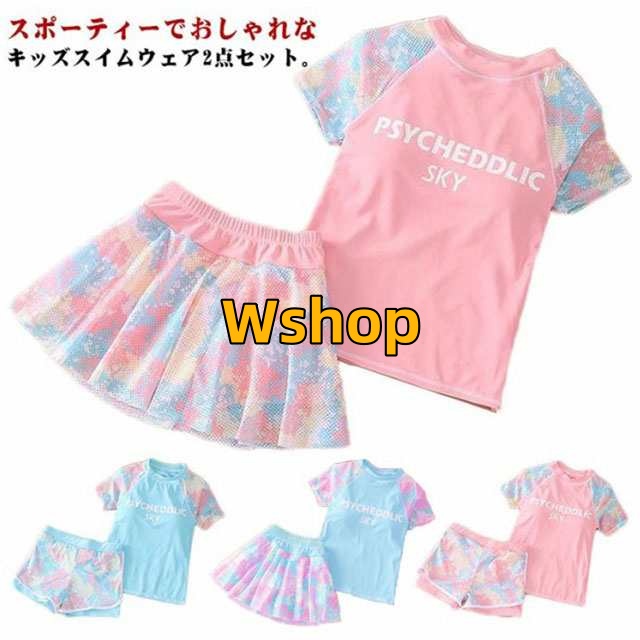 子供水着 2点セット スカート スクール水着 インナーパンツ付き 水着 ショーツ 上下セット 海 キッズ水着 ラッシュガード 小学生 フィットネス水着 2点セット ガールズ ジュニア水着 半袖 100-150cm 水陸両用 セパレート ビーチ プール