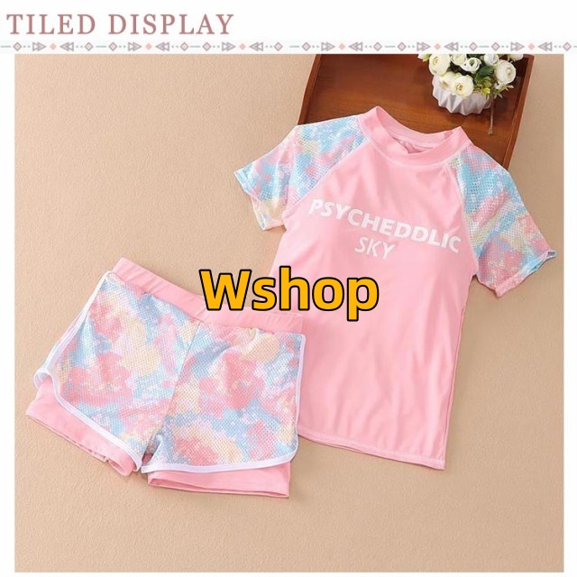 | スポーティーでおしゃれなキッズスイムウェア2点セット。 半袖トップス+ショートパンツ/スカートの2点セットで、コーデに迷わず、簡単にスタイリングが完成! オシャレロゴ&袖とボトム部分に取り入れたカラフルな柄が子どもっぽすぎないセパレート水着。 露出が抑えられる半袖タイプ、日焼け対策になり、ママも安心。 洋服みたいおしゃれなデザイン、上下セパレートタイプでお着替えやトイレの際もさっと着脱ができて楽ちん♪ | |