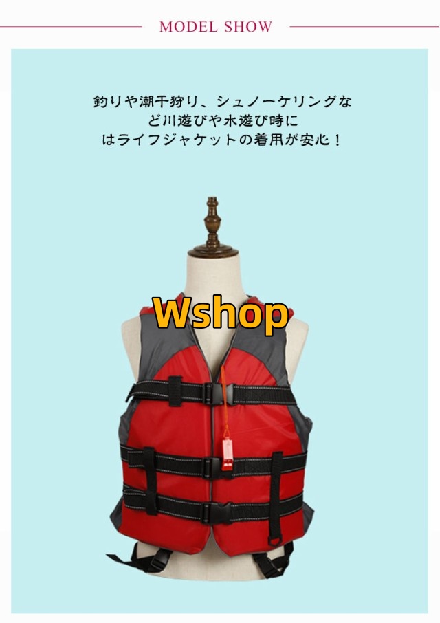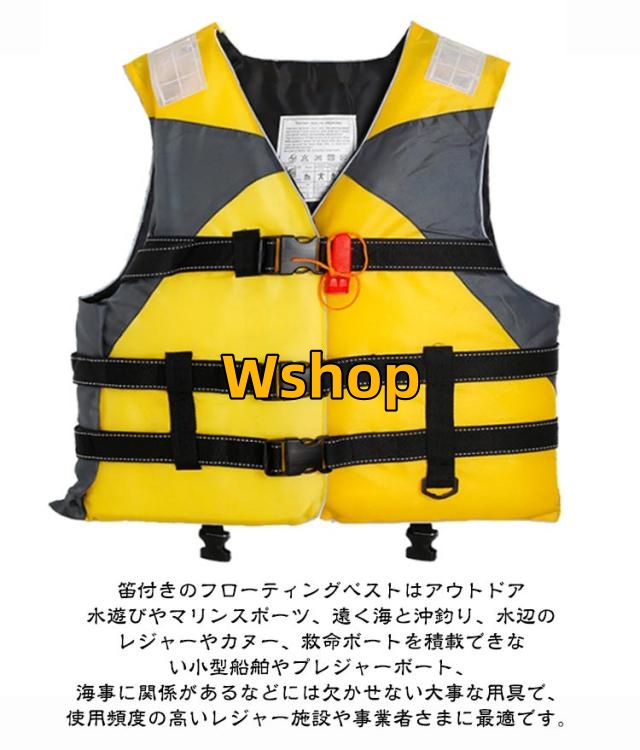 | 釣りや潮干狩り、シュノーケリングなど川遊びや水遊び時にはライフジャケットの着用が安心! 胴体をしっかりホールドするスポーツタイプのライフジャケットは三本ベルト仕様で、下のウエストベルト2本は調節でき、装着後に、しっかりとウエストを締めこみ、安全を守る。 海や川、湖に出かける機会が多くなる季節に水遊びや魚釣り等に欠かせないアイテムです。笛付きのフローティングベストはアウトドア水遊びやマリンスポーツ、遠く海と沖釣り、水辺のレジャーやカヌー、救命ボートを積載できない小型船舶やプレジャーボート、海事に関係があるなどには欠かせない大事な用具で、使用頻度の高いレジャー施設や事業者さまに最適です。 反射帯付きなので、鮮明的な色を採用して浜辺などの人込みでもひときわ目立ち、姿を見失っても「あそこにいる!」って見つけやすいです。泳ぐことに邪魔にならずに確実に浮力を確保できるデザインです。 | |