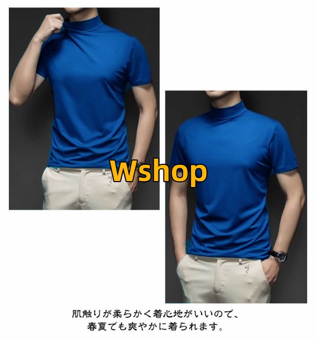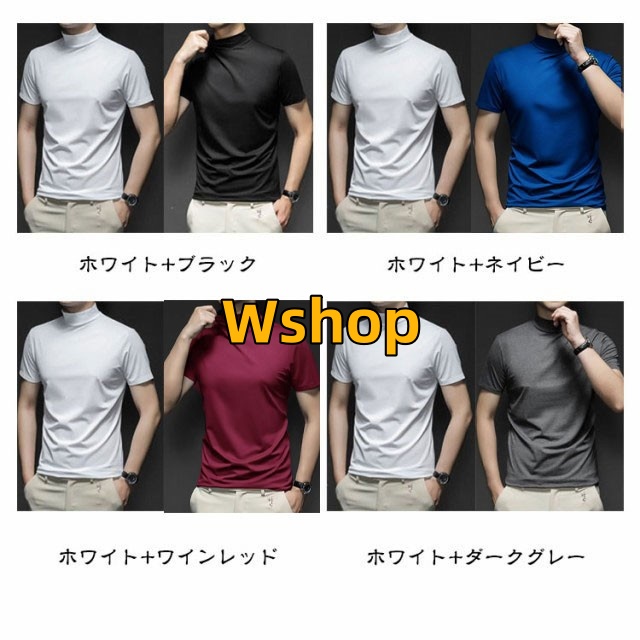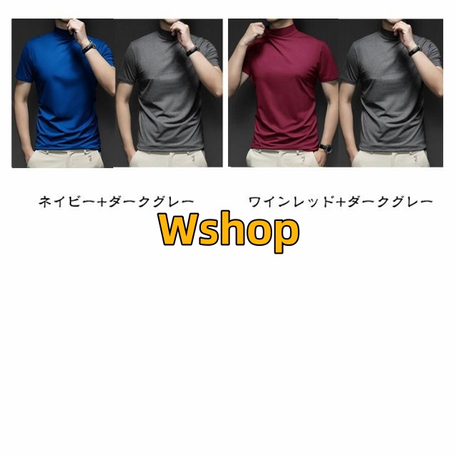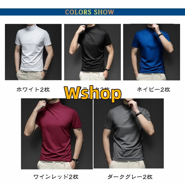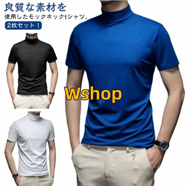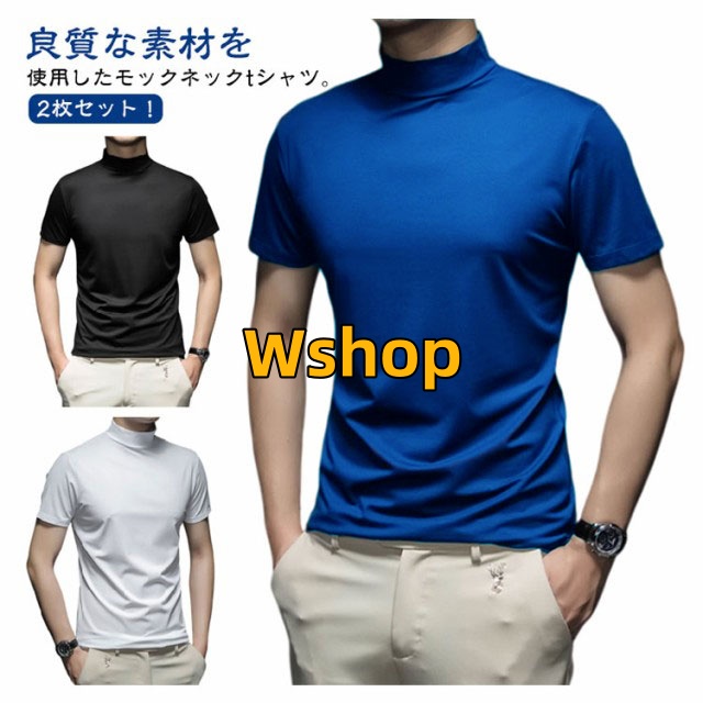 ストレッチ 半袖 2枚セット 春 ハイネックtシャツ メンズ モックネック 夏 モックネックシャツ トップス ランニング ハイネック メンズシャツ 半袖 カットソー スポーツウェア ゴルフウェア 無地 作業着 半袖Tシャツ 秋 冬 送料無料 シャツ ゴルフシャツ