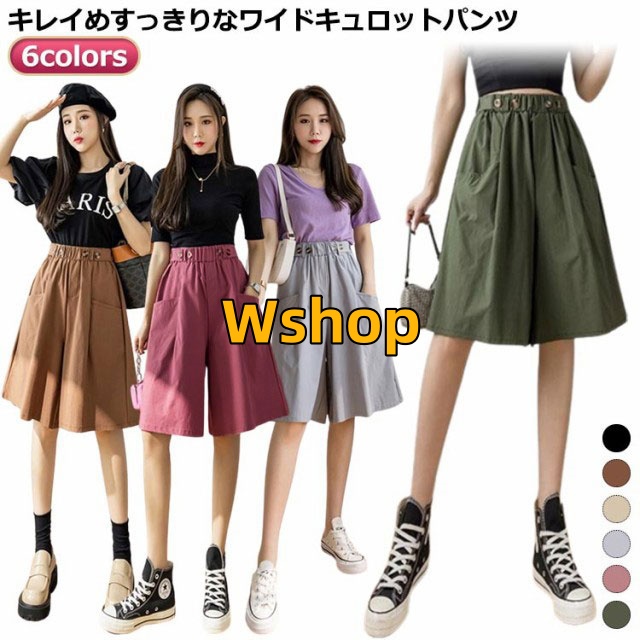 カーキ ハイウエスト ウエストゴム ピンク きれいめ ストレッチ レディース スカーチョ ガウチョパンツ ベージュ ブラック Aライン 夏用 ひざ下 夏 ワイドパンツ キュロットパンツ 七分丈 ショートパンツ ポケット付き グレー ブラウン ハーフパンツ