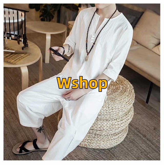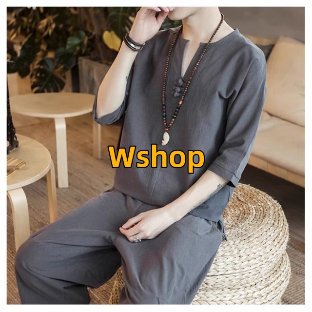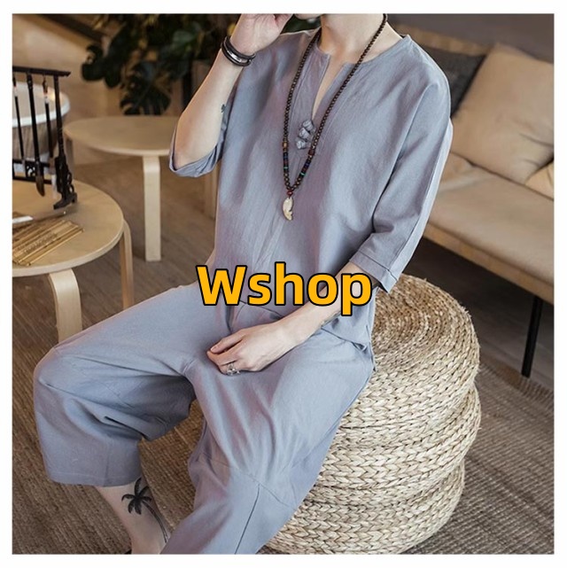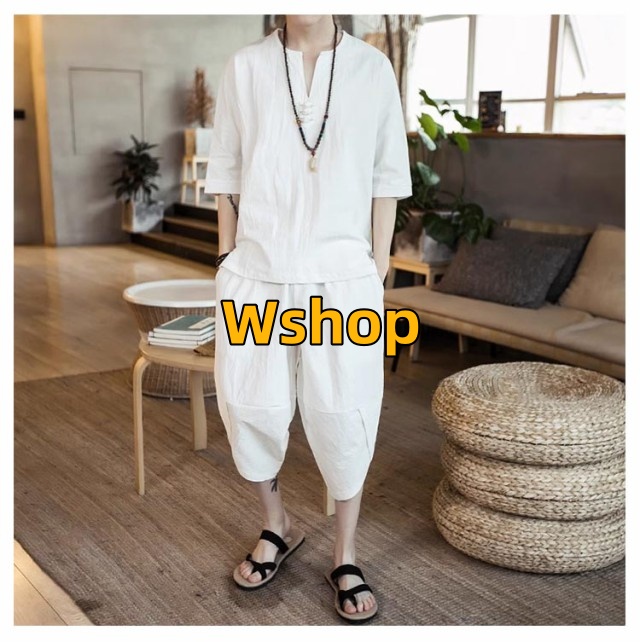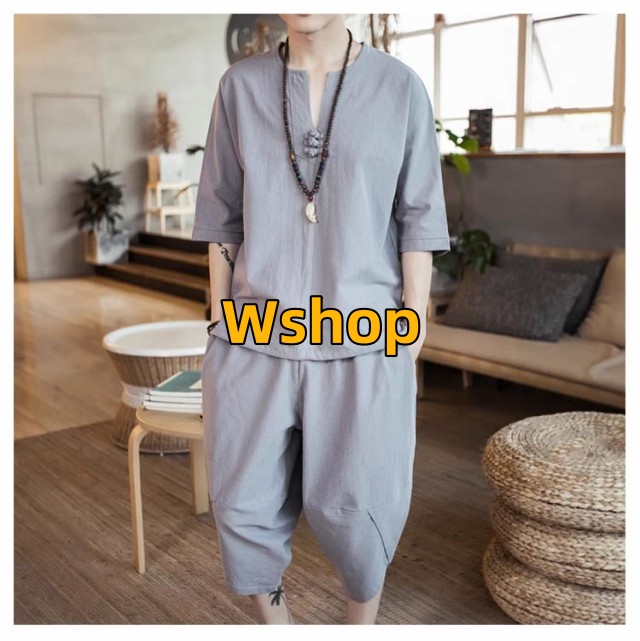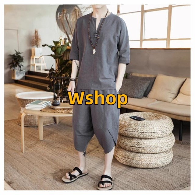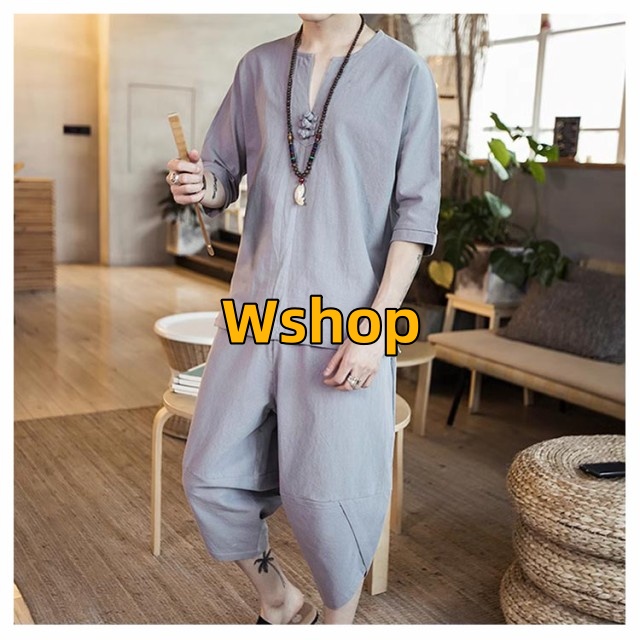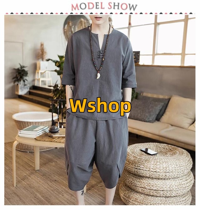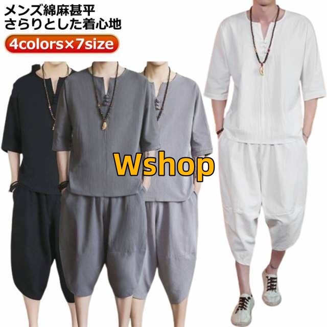 売れ筋アイテム 毎日使える便利品 おしゃれ 夏 パジャマ サルエルパンツ 夏用 涼しい 麻混 麻 寝巻き 在庫わずか 大人 7分丈 入院 半袖 綿 セットアップ 部屋着 話題商品 SNS話題 男性 風 タイプ ルームウェア メンズ 甚平 即納対応中