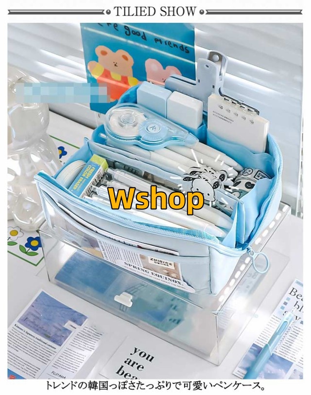 | 外側の透明ポケット部分にまでたっぷり収納できる、大容量ペンケース! トレンドの韓国っぽさたっぷりで可愛いペンケース 筆箱シンプルは良質なキャンバス生地で作られており、精巧で耐久性があり、軽くて耐摩耗性で清潔になりやすいです しっかりとした生地と豊富カラーがおしゃれ! ペンなどの文房具やメイクブラシなど収納できます | |