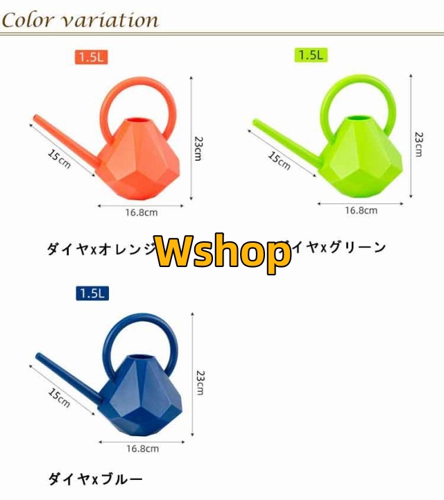 | 北欧雑貨をイメージしたおしゃれなカラーリングのジョーロです♪ ダイヤモンド&丸形の2タイプ、容量1.2リットルのじょうろです。 ストレートタイプの注ぎ口で室内での水やりやピンポイントで水やりしたいときに便利です。 水やり作業はもちろん、ガーデンオーナメントとしてもおすすめです。 ガーデニングを楽しくおしゃれに演出します。 | |