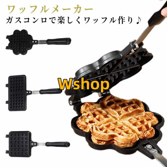 ガス火 ティータイム アウトドア 手軽 直火式 両面 自宅 アルミ製 おやつ ワッフルメーカー ふっ素加工 手作り ハート型ワッフル ホットサンドメーカー 簡単 2枚焼き キャンプ
