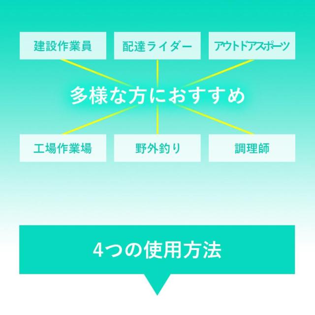 小型軽量で、工事現場、厨房、農作業、配達作業、工場内、倉庫、スポーツ観戦、お祭り、アウトドア活動など様々なシーンで暑さ対策用品として大活躍の腰掛け扇風機です。
