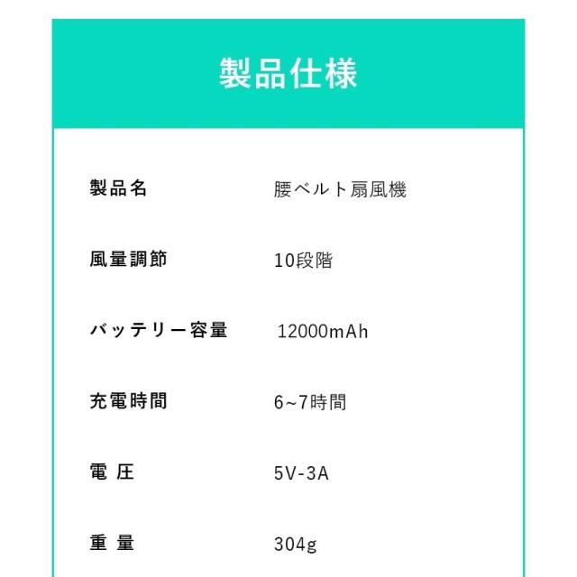 12000mAhの大容量充電式バッテリーが内蔵されており、長時間の稼働をサポートし、涼しい風を長時間楽しむことができます。モバイルバッテリーとしても使えます。
