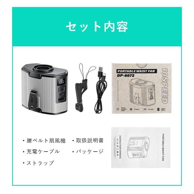 腰掛け:ベルトに付けると、衣服内に風を送り込みます。