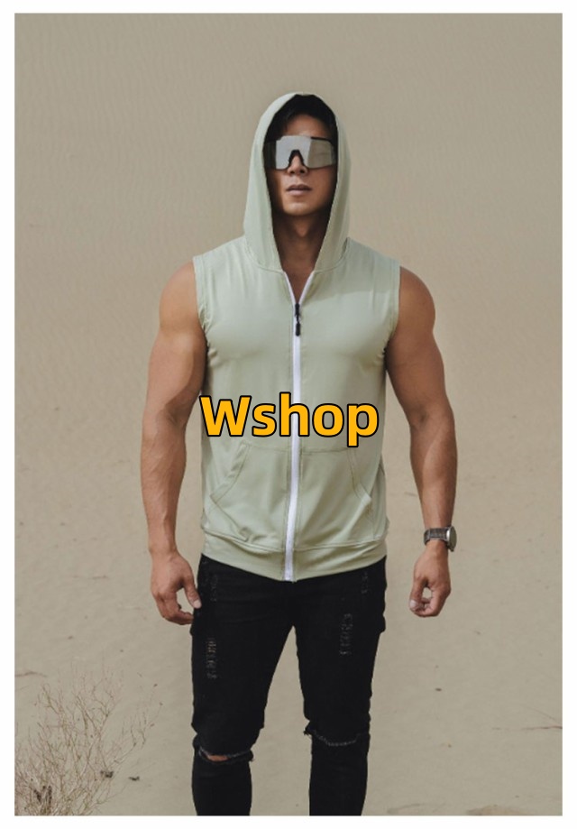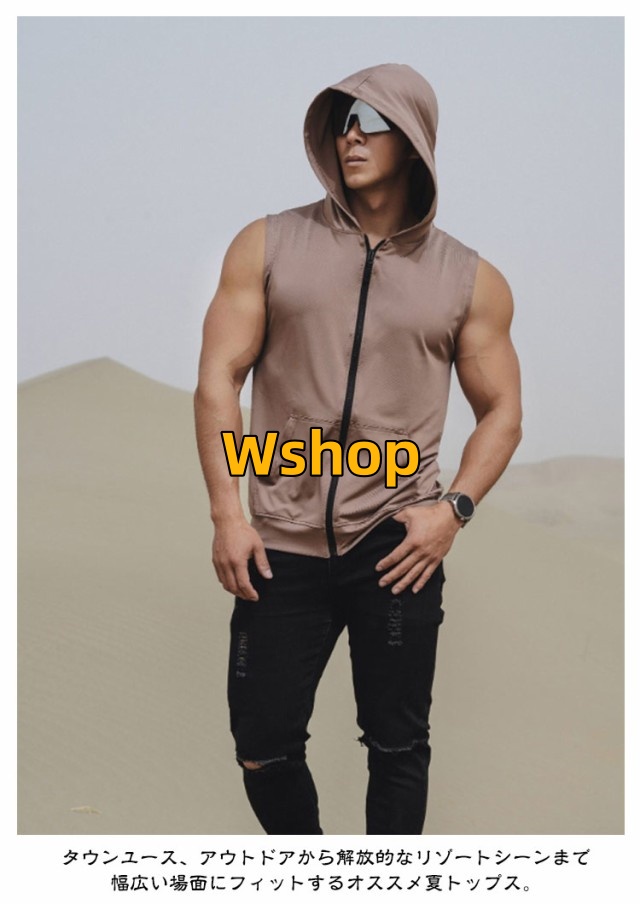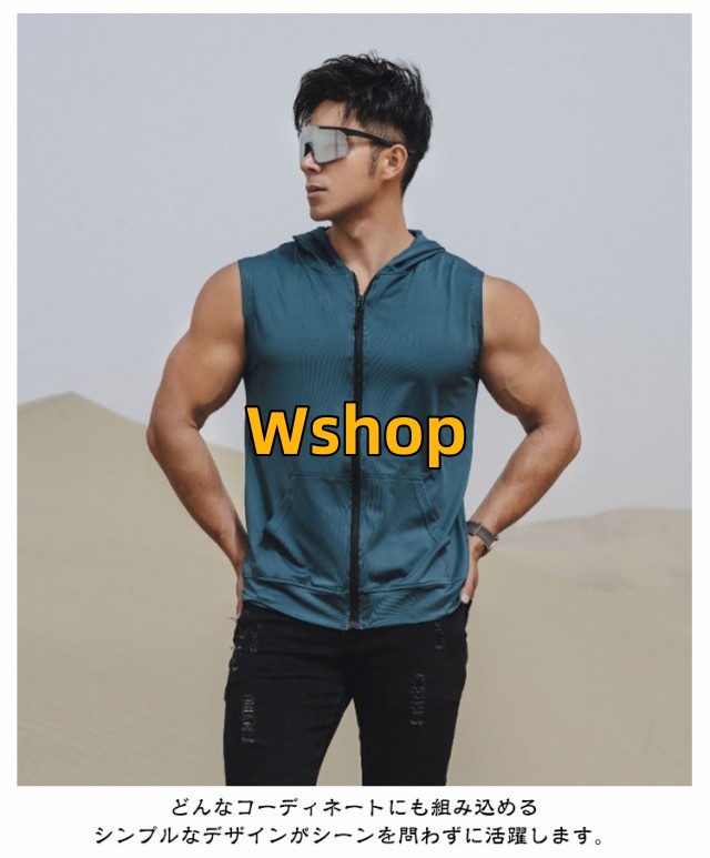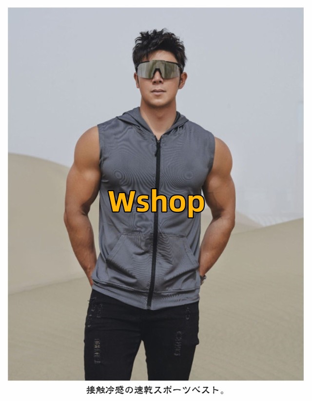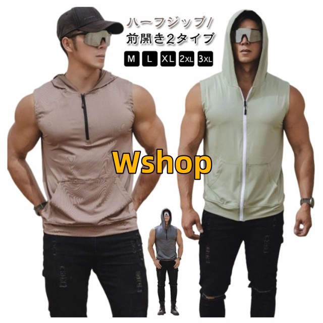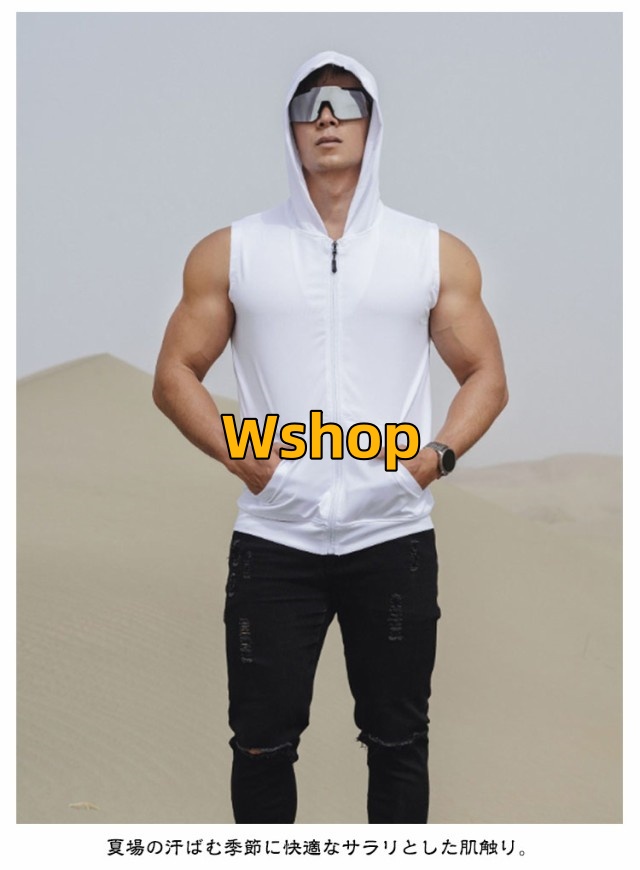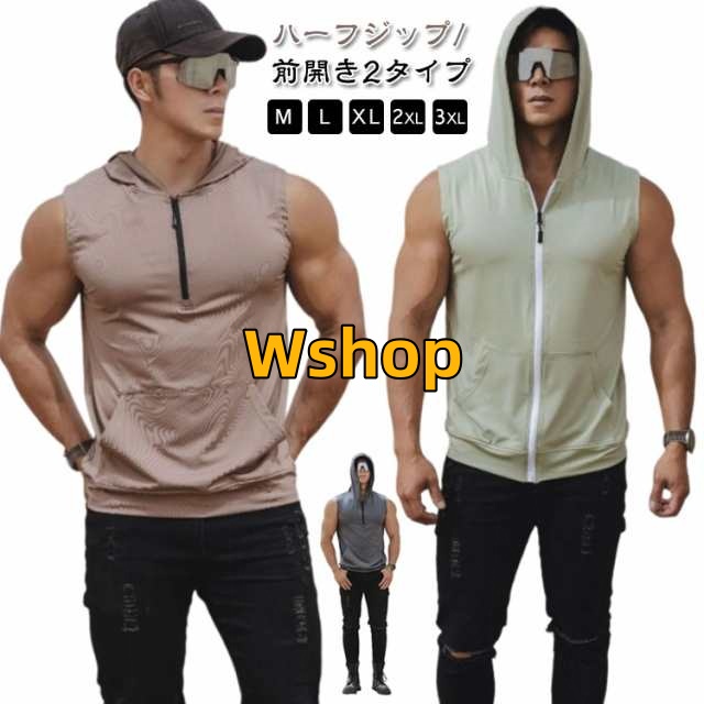 フード付き ストリート系 パーカー アイスシルク L ジムウェア ノースリーブパーカー 袖なし スポーツウエア ベスト メンズ ハーフジップ/前開き2タイプ!フード付ベスト M 接触冷感 ハーフジップ/前開き2タイプ! 速乾 トレーニングウェア ノースリーブ