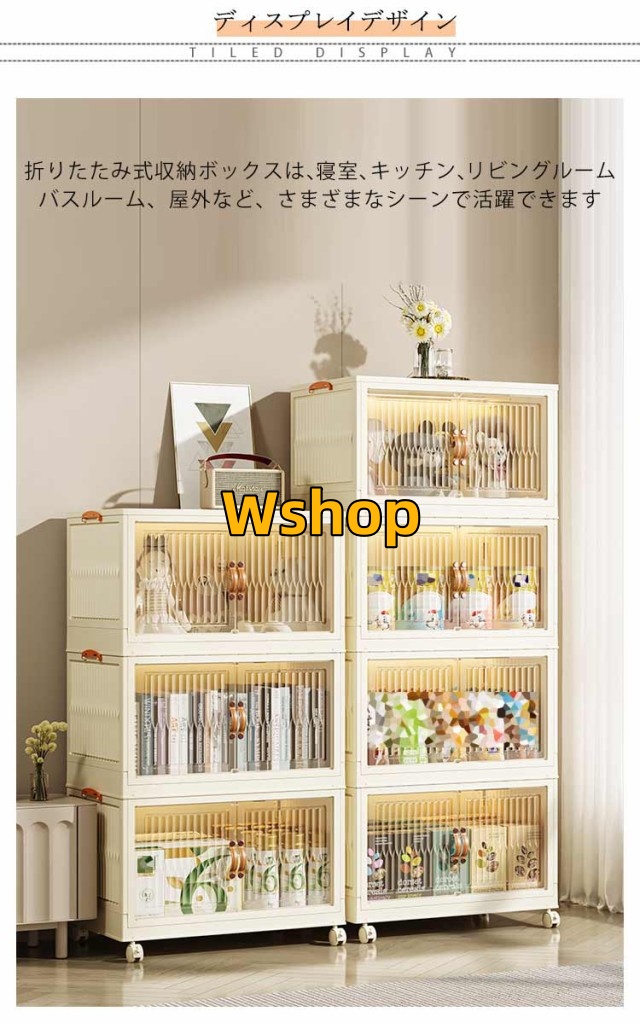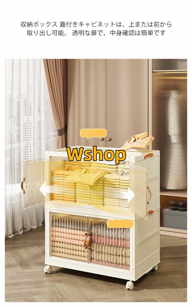 | 【積み重ね可能】折りたたみ収納ボックスの段数は組み合わせが自由。各段の両サイドにはバックルロック付きで滑りにくいです。 底部にはキャスターが付いており、積み重ねても移動はラクラク。 【2通りの取り出し方法】収納ボックス 蓋付きキャビネットは、上または前から取り出し可能。 透明な扉で、中身確認は簡単です。 【折りたたみ可能】 折りたたみコンテナの組立は簡単。 折りたたんだ後、コンパクトに収納することができて、持ち運びも便利です。 【高品質素材】最新の収納箱は、高品質のPP + ABS素材で作られています。 無臭で頑丈、耐荷重は60kgです。 【大容量】 折りたたみ式収納ボックスは、寝室、キッチン、リビングルーム、バスルーム、屋外など、さまざまなシーンで活躍できます。 | |