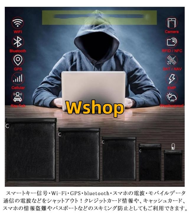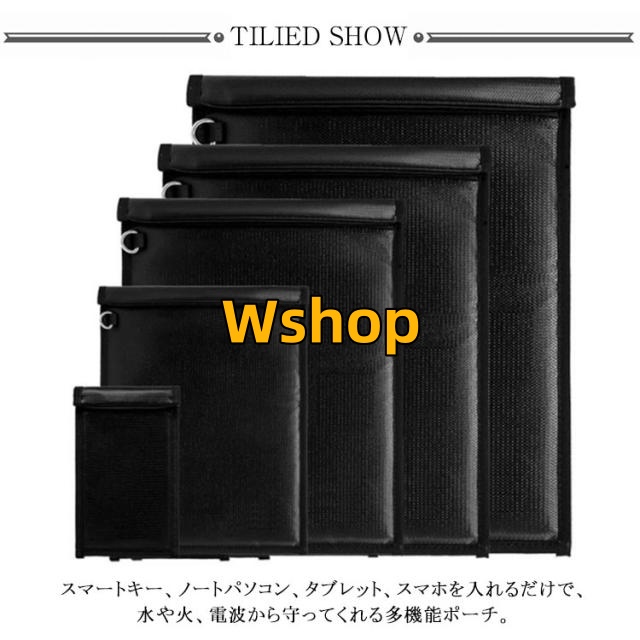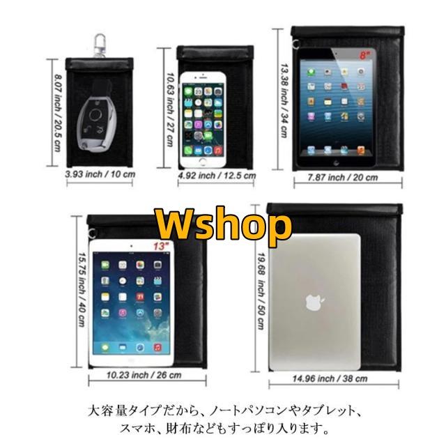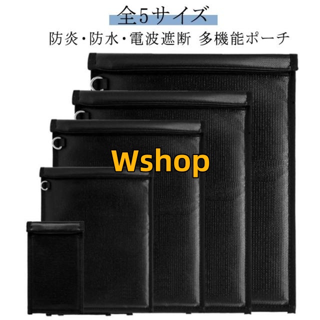 | 【防炎・防水・電波遮断 多機能ポーチ】【全5サイズ】 スマートキー、ノートパソコン、タブレット、スマホを入れるだけで、水や火、電波から守ってくれる多機能ポーチ。 大容量タイプだから、ノートパソコンやタブレット、スマホ、財布などもすっぽり入ります。 スマートキー信号・Wi-Fi・GPS・bluetooth・スマホの電波・モバイルデータ通信の電波などをシャットアウト!クレジットカード情報や、キャッシュカード、 スマホの情報盗難やパスポートなどのスキミング防止としてもご利用できます。 燃えにくい素材で大切なものを守ります。 大切な貴金属や現金、書類、通帳、印鑑、カード等の保管にも最適! | |
