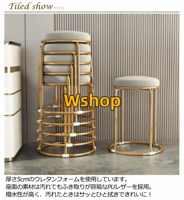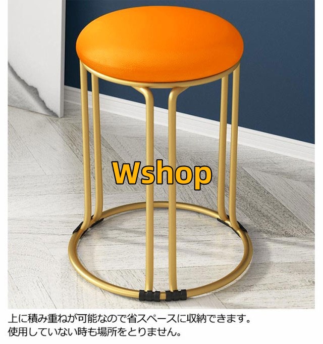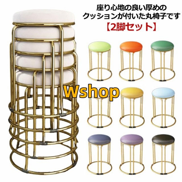 リビング 丸 玄関 北欧 シンプル おしゃれ 低反発 モダン 金脚 レザー 積み重ね 丸椅子 スツール ダイニングチェア ダイニング 丸 コンパクト チェア 椅子 高さ46 2脚セット クッション 高級感 くすみカラー いす イス 円形